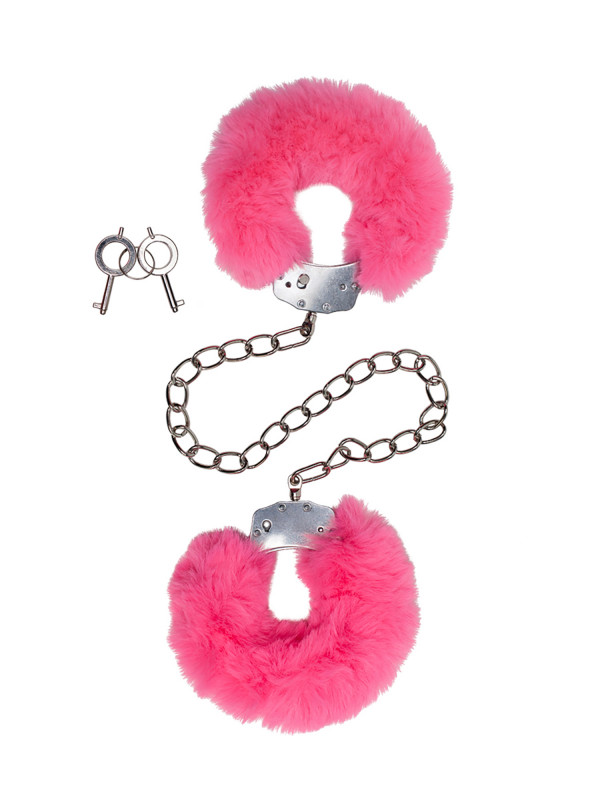 Превосходные оковы серебряного цвета с элитным розовым мехом
