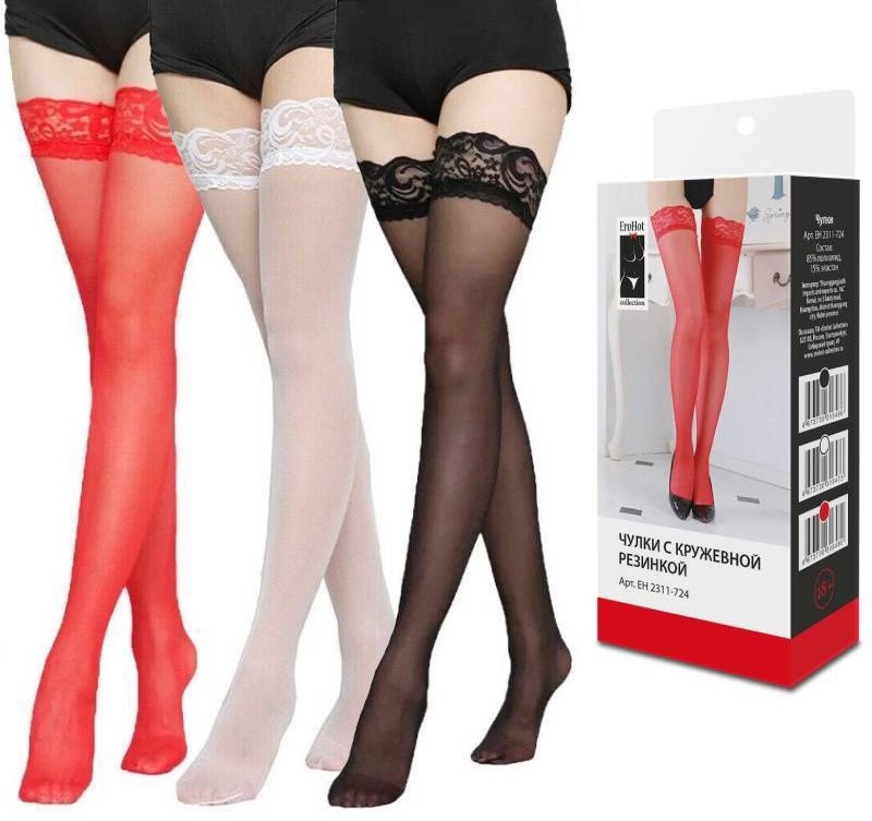 В комплект входят: - Чулки с белой кружевной резинкой